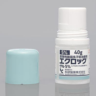 | 特徴 | ゲルタイプの外用のお薬です。皮膚から吸収した薬剤が、汗を分泌するエクリン汗腺においてアセチルコリンという神経伝達物質の働きをブロックして汗の分泌を抑制します。 |