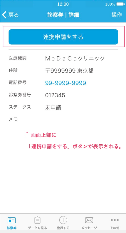 ↓MeDaCaサービスを導入している医療機関の「診察券|詳細」の画面表示