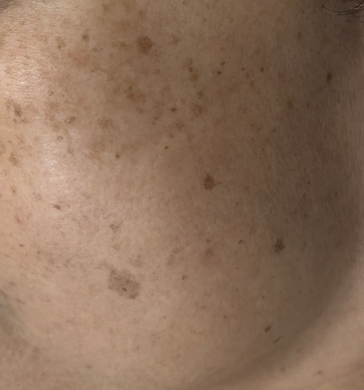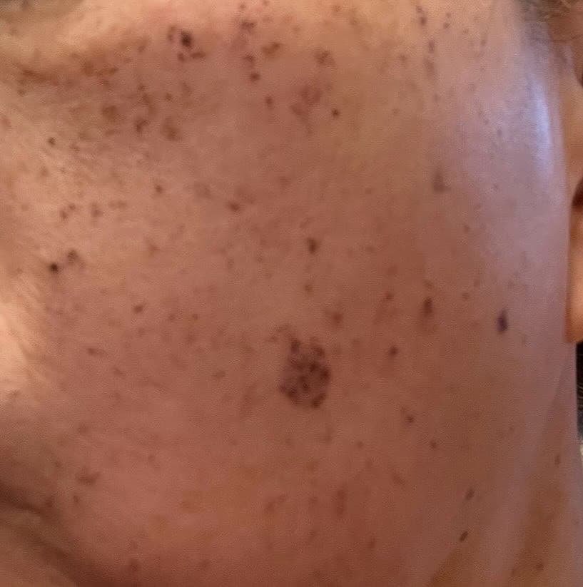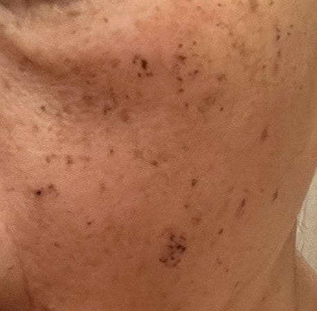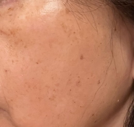照射後にかさぶたになったシミが剥がれ落ち、くすみも改善しています。