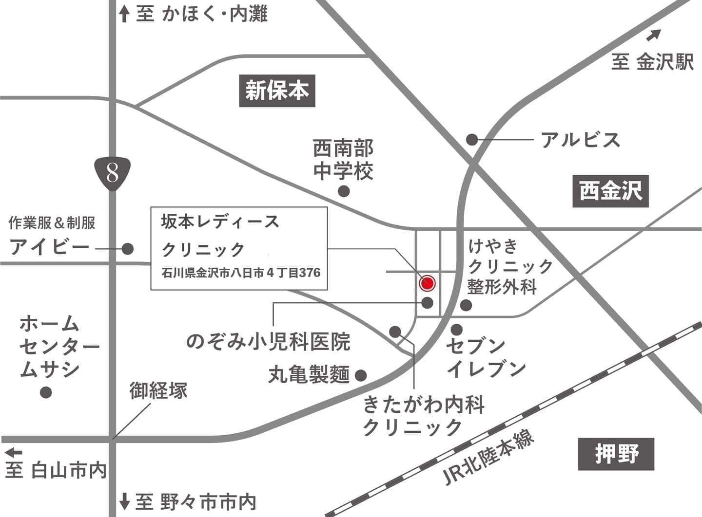 最寄り駅:JR西金沢駅 徒歩約20分 西金沢駅からの道順